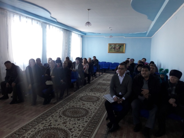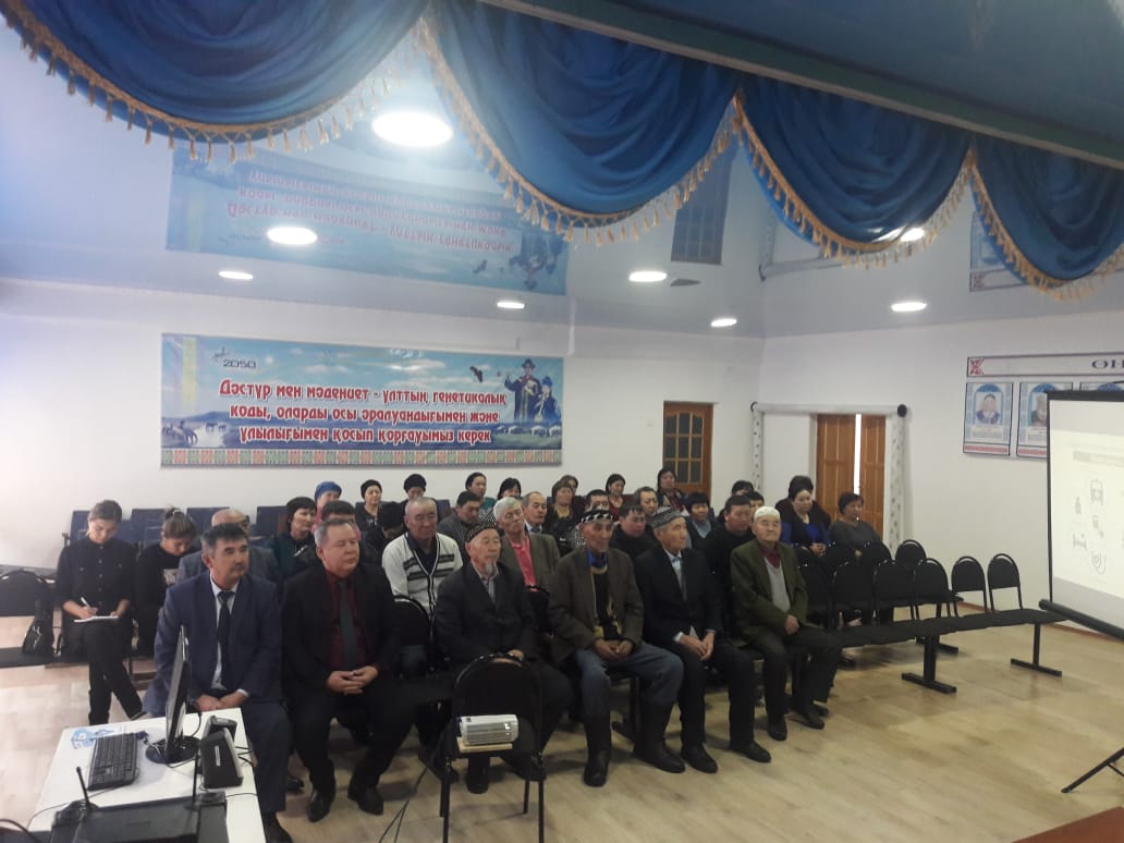 28.11.2019 года в сельском округе Каракенгир. Проведено разъяснения по: ОСМС, ГОБМП, работа портала госпитализации, РПН и прикрепление населения, о своевременном прохождении флюорографического осмотра. Заслушаны проблемные вопросы населения косательно медицинской помощи. Разъяснено как определить статус в системе ОСМС. Розданы брощюры по ОСМС, скринингам, участвовали – 44.