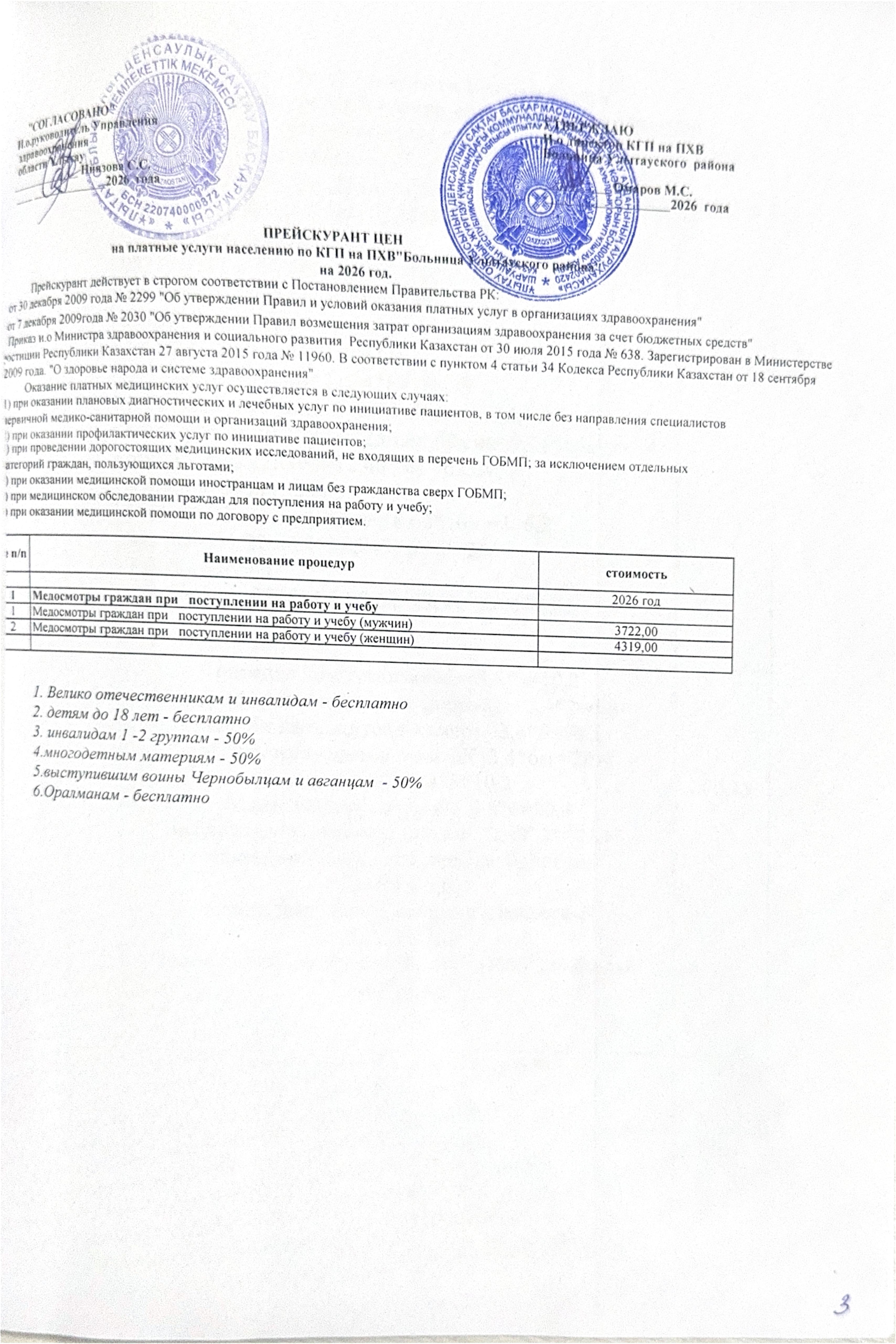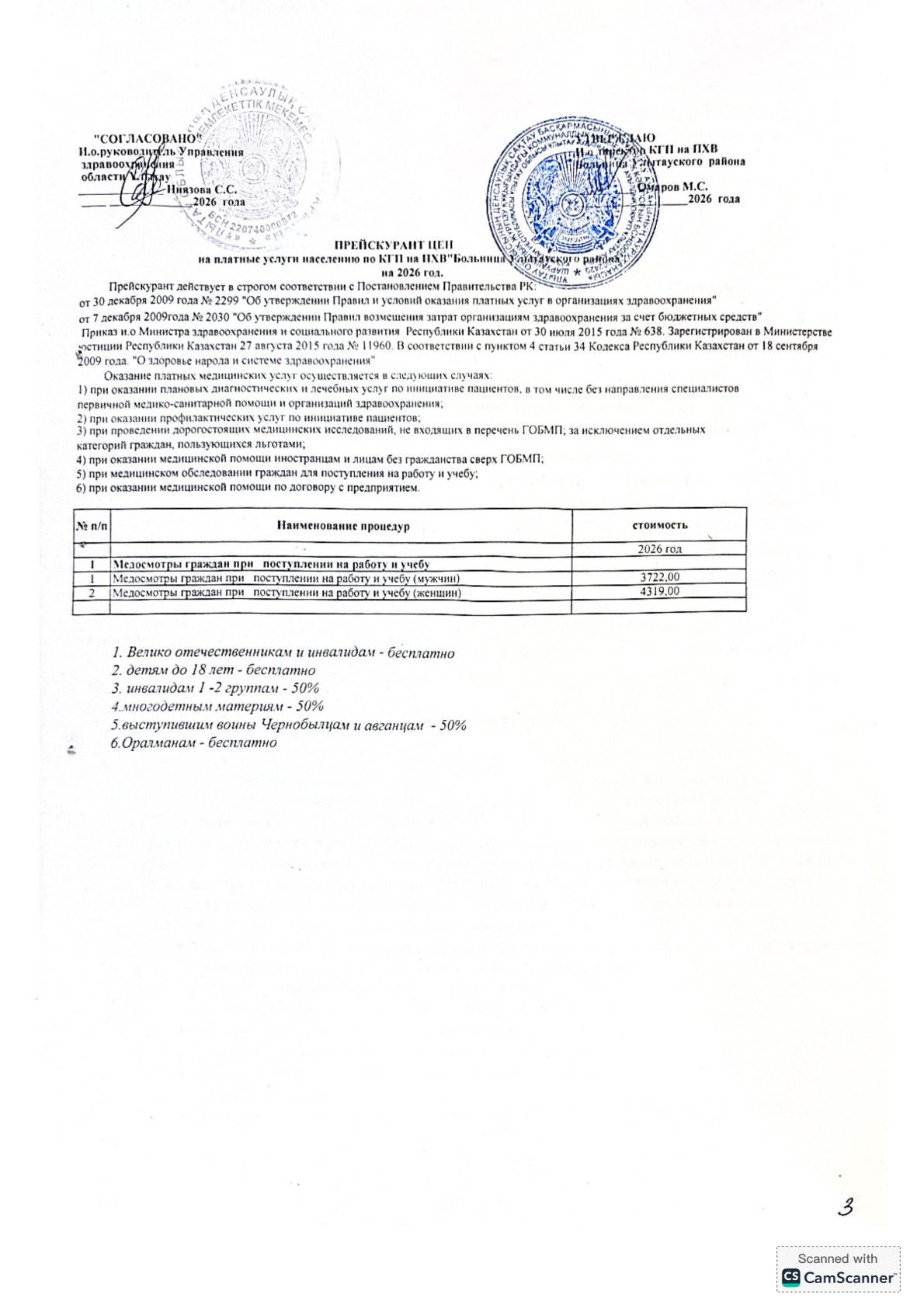 Прейскурант цен
