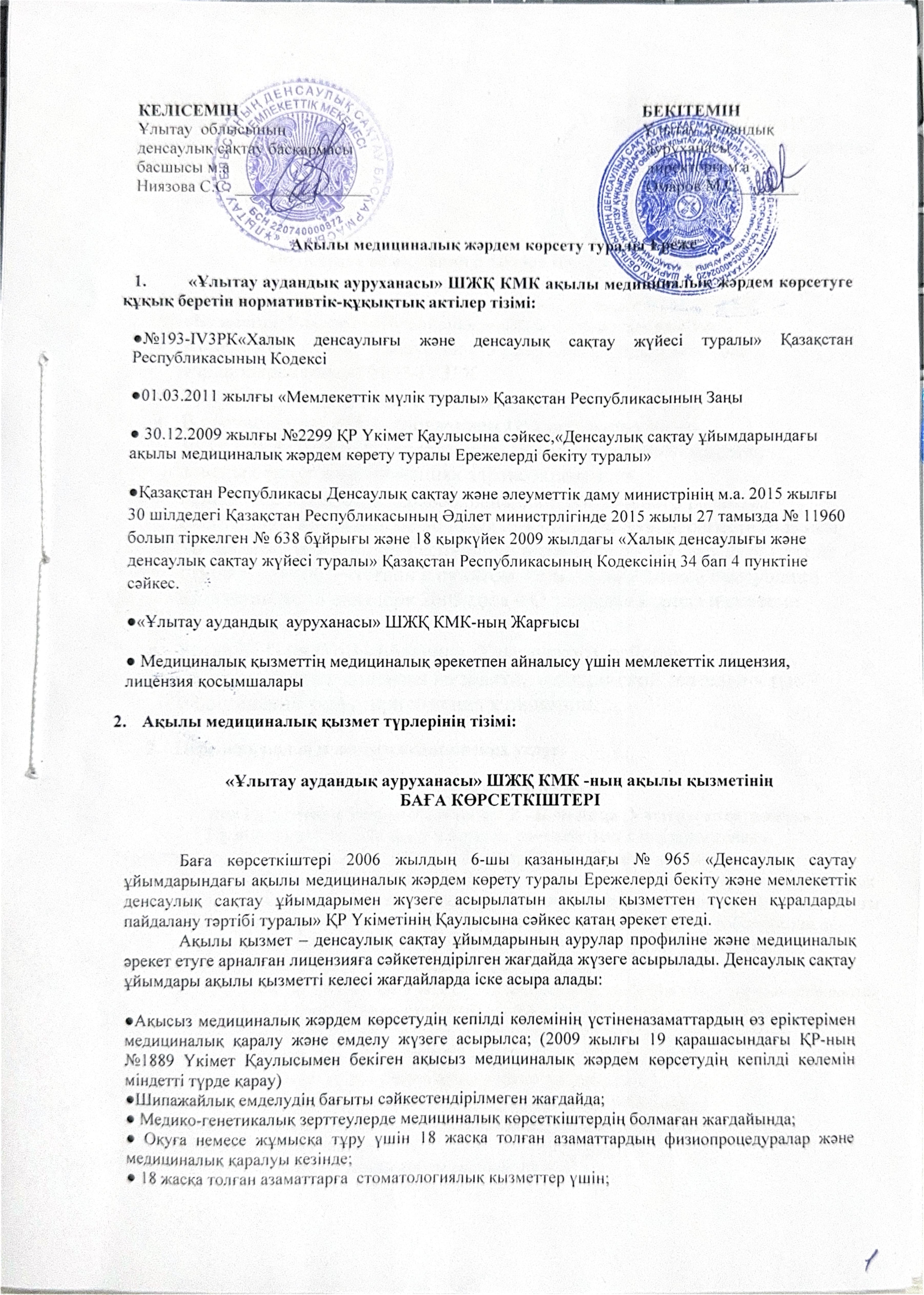 КГП на ПХВ «Больница Улытауского района» управления здравоохранения области Ұлытау